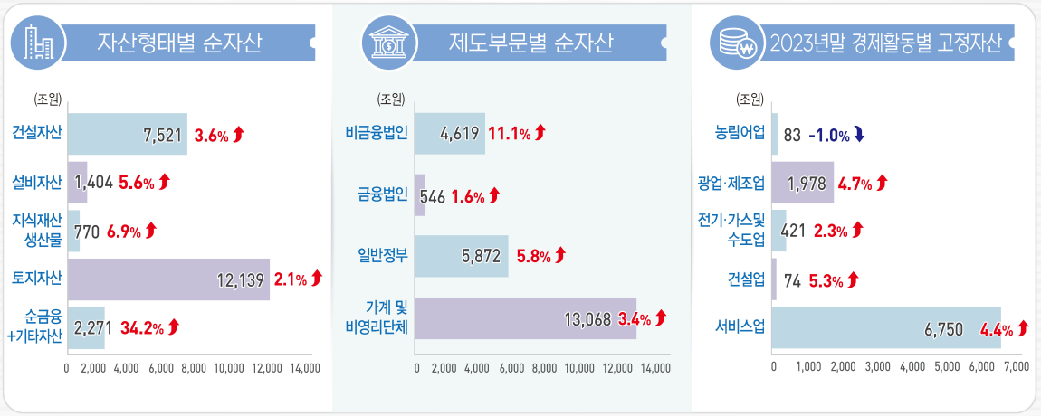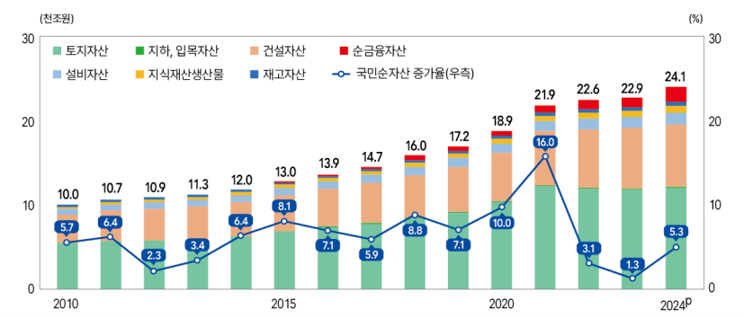 가구가 아닌 개인 기준 순자산은 어떨까요? 2024년 말 기준 1인당 순자산은 2억5251만 원 전년도 대비 3.3% 증가 순자산이 증가한 이유는 다음과 같습니다.